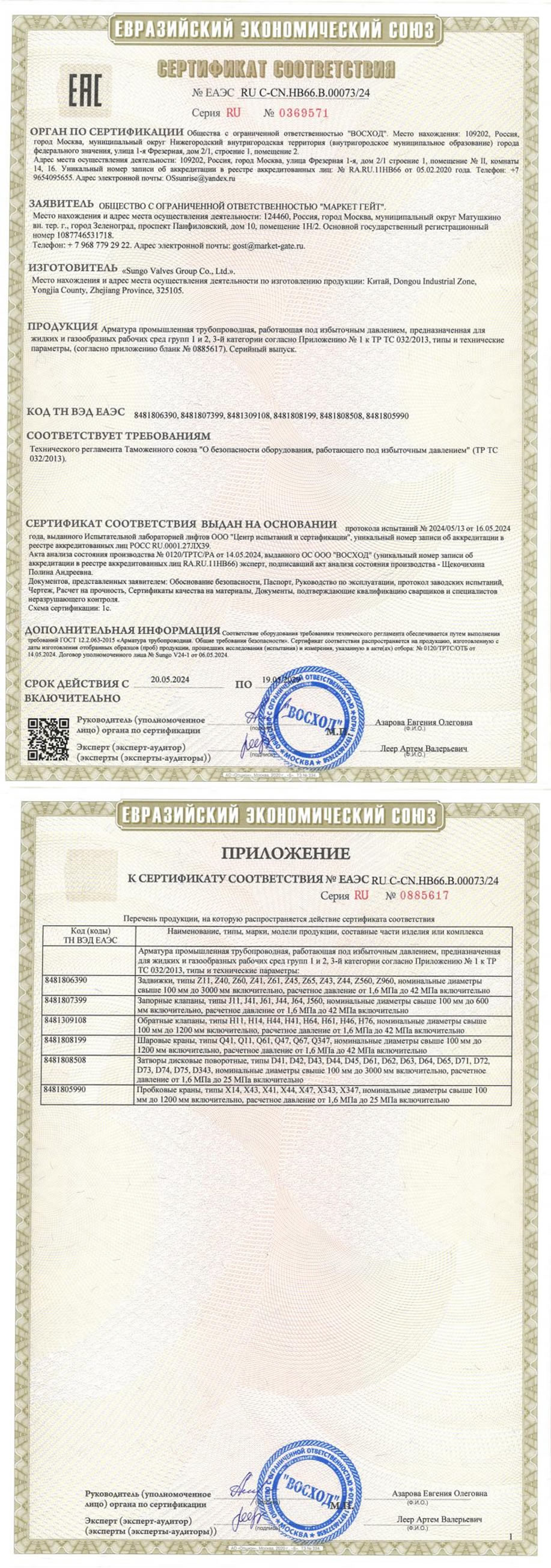 歐亞經濟聯盟EAC(CU-TR)認證證書